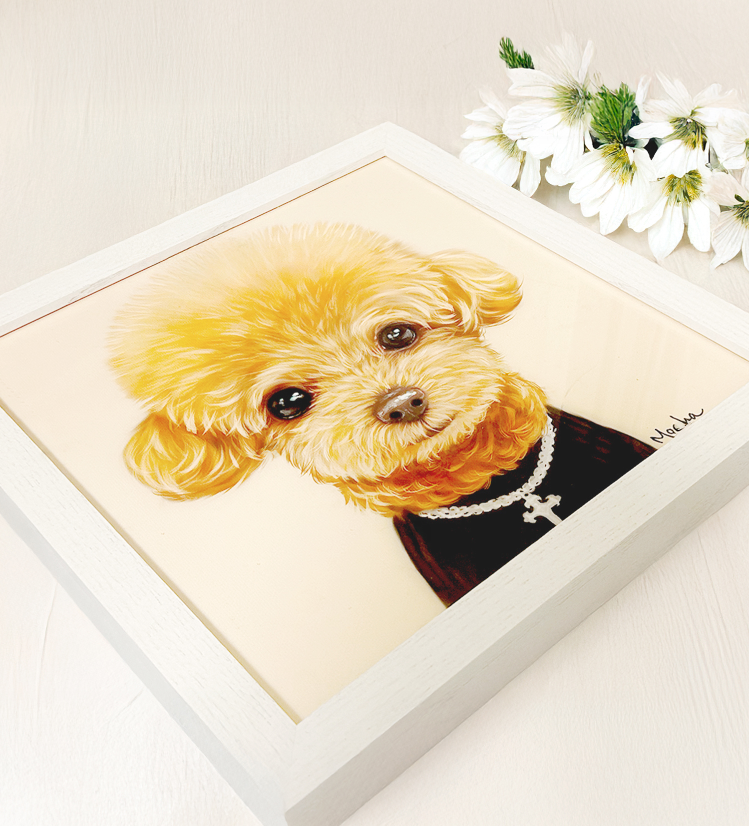500点以上のオーダー作品を手掛けてきたアーティストが、ペットの個性や性格を丁寧に汲み取り、一枚一枚心を込めて描き上げます。